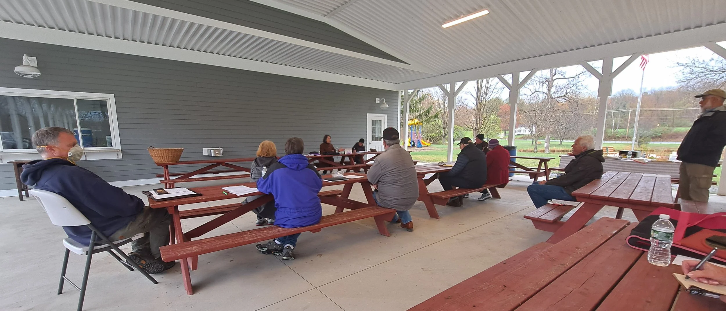 On Monday, May 2, we had our first hybrid meeting—in person and on Zoom. Most met under the pavilion at Crellin Park. One dialed in on Zoom. It turned out pretty well for our first foray into hybrid meetings.