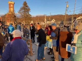 On the one-year anniversary of Russia’s invasion of Ukraine, a crowd of nearly 60 people gathered in bitterly cold temperatures at the Chatham Village Green for a vigil commemorating the occasion.