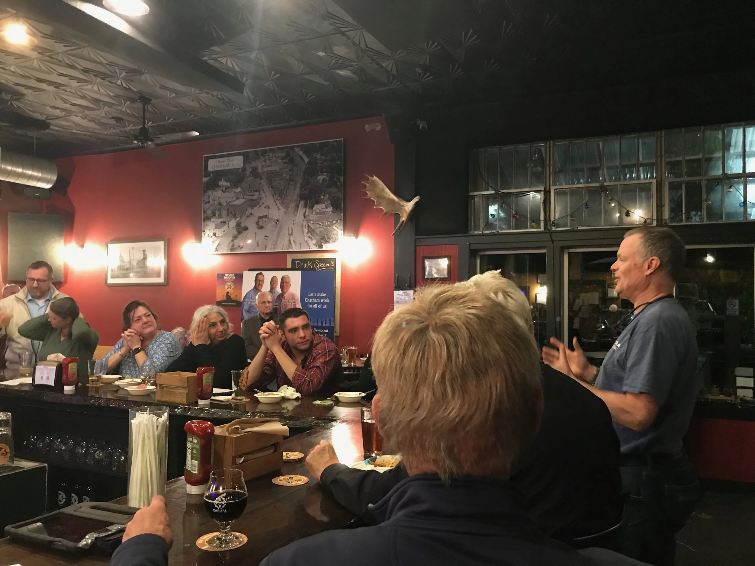 An enthusiastic 75 people gathered on Tuesday for the Chatham Dems Annual Chili Fest at the Chatham Brewing Company on Main Street.