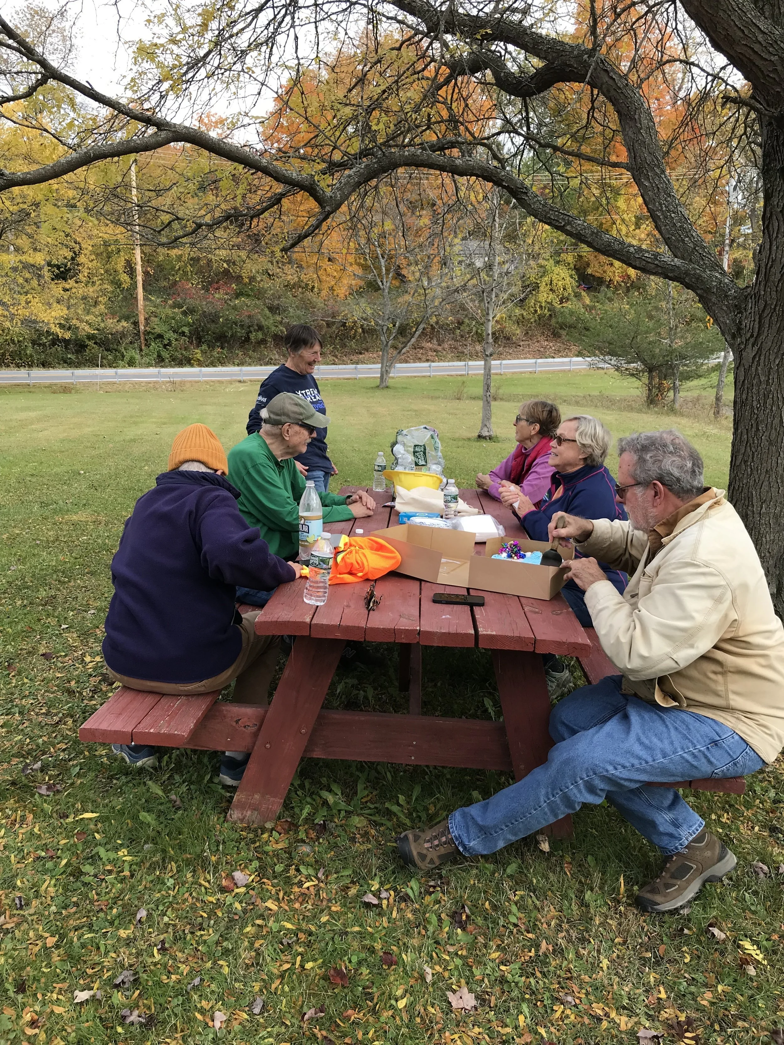 Chatham Dems turned out in force on Sunday Oct 16 to clean both sides of State Road 66 from Crellin Park to Boice Road. Only then could they have dessert, which was a birthday cake for Tom Ehrich.