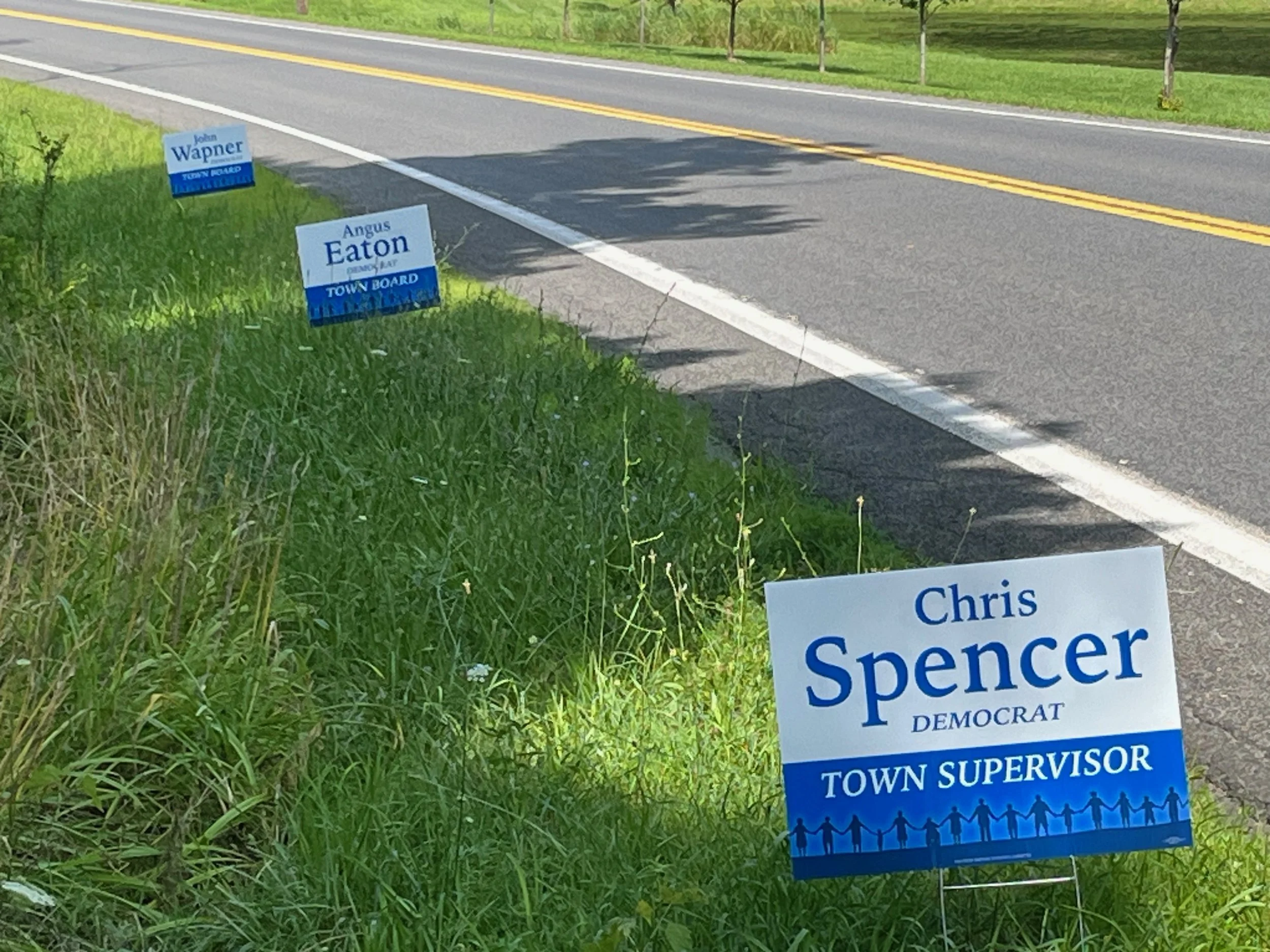 You can pick up signs at Tom Ehrich’s house, 1061 County Rte 13, Old Chatham.