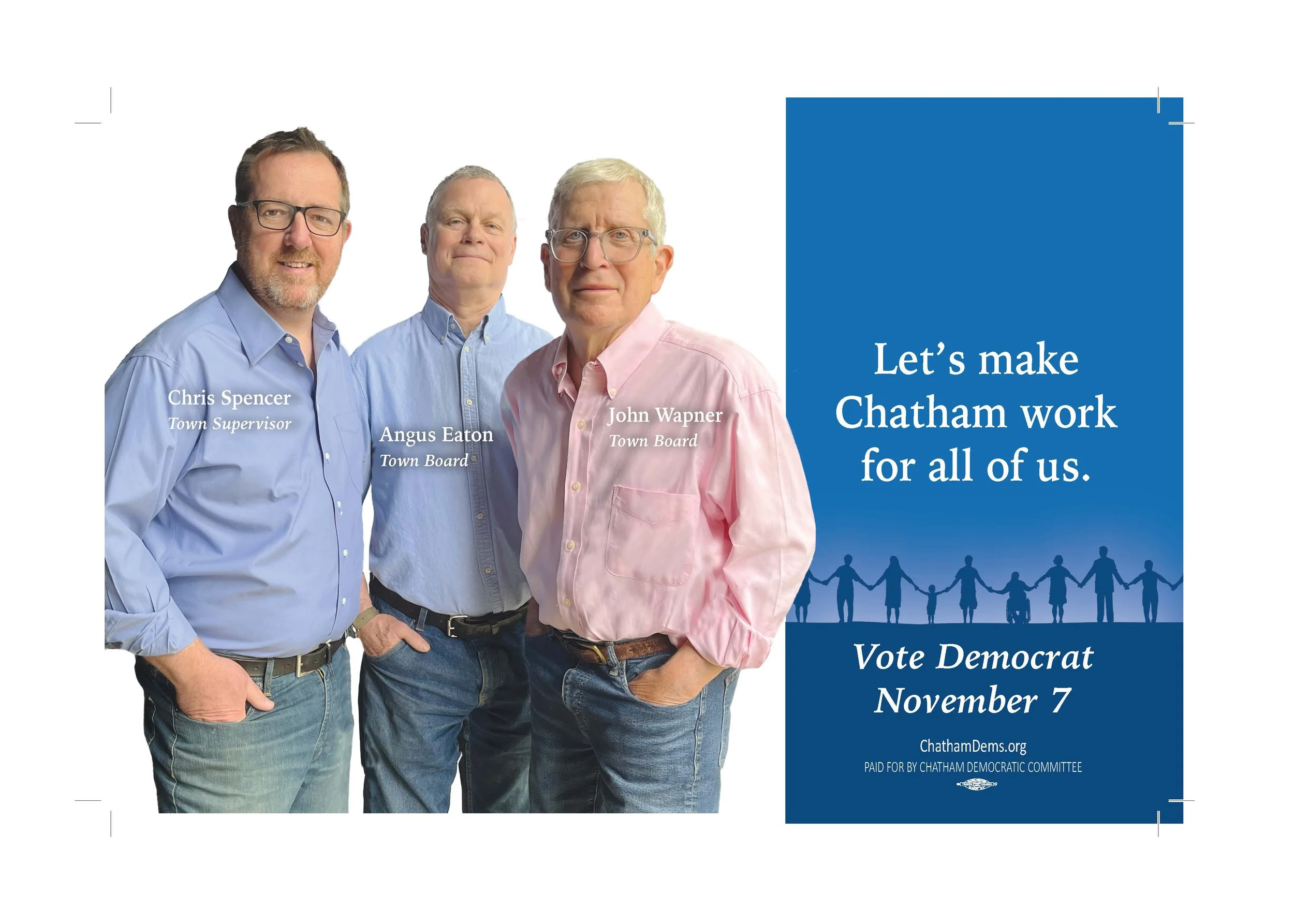 With personal contacts, we believe the voters of Chatham will support Chris Spencer, candidate for Town Supervisor, and our two Town Board candidates, Angus Eaton and John Wapner.